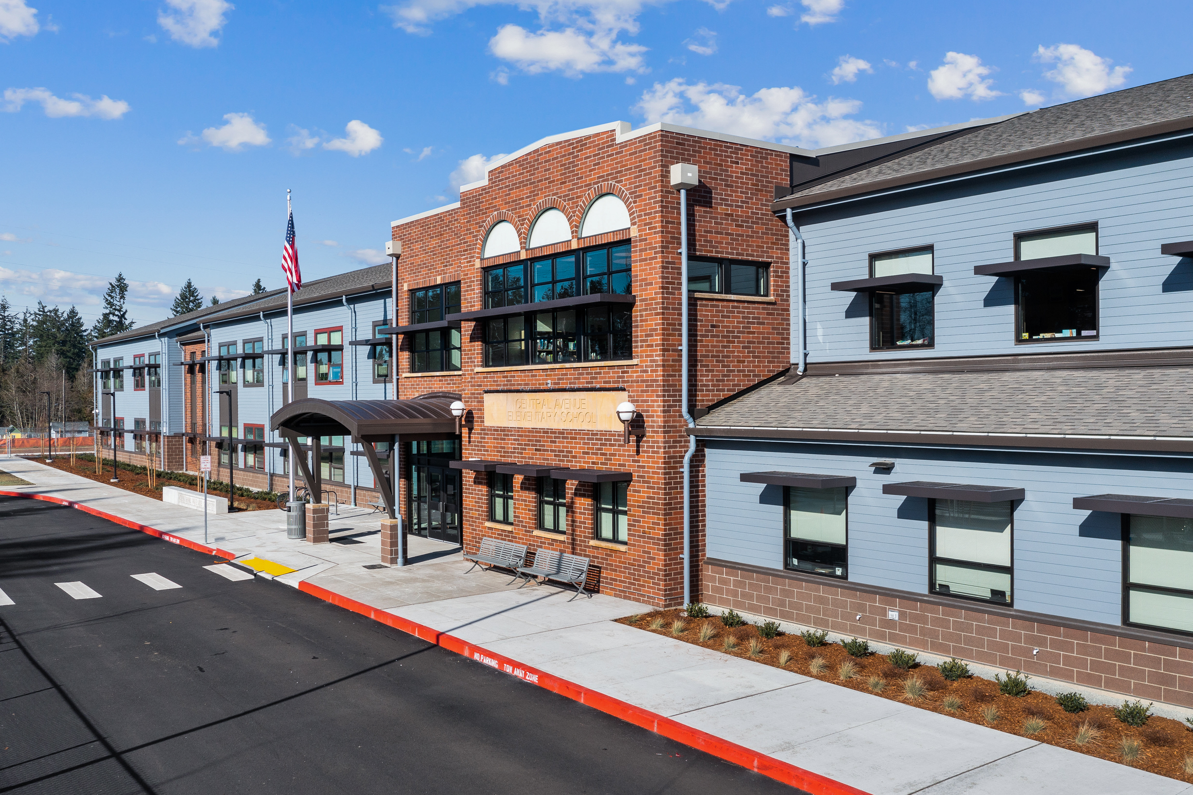Central Avenue Elementary School – A Modern Take on Historical American Masonry Words: Jake SulyaPhotos: WARFIELD MASONRY LLCCentral Avenue Elementary School is a project that the team here at Warfield Masonry completed in 2021. Located in Midland, Washington, the project involved the demolition and replacement of the original Central Avenue School built in 1949. The original elementary school building consisted of brick masonry materials and included brick masonry arched windows with other intricate brick features. Designed by Erickson McGovern Architects, the new building was created to resemble the 1949 original with a more modernized look. With brick masonry being such a historical building practice, it was only right that the new school was designed with masonry integrated as well. The overall budget for this project was $20,051,000, with the masonry portion accounting for a little over 1% of that total. Partnered with Neely Construction Company as the general contractor, the Central Avenue Elementary School Replacement project is just one of the many projects Franklin-Pierce Public Schools have introduced to replace or modernize their school buildings. The team here at Warfield Masonry was very fortunate to work on this project, and it brings me great joy to highlight it for MASONRY Magazine.The exterior of the new elementary school building consists of a variety of Mutual Materials masonry products. The school’s entrance was built with a blend of “Inca,” “Vintage,” and “Autumn Blend” econ brick accented by the “Natural Gray” Type S Mortar. The exterior wainscot consists of 4” Smooth Face “Deep Plum” CMU veneer with “Natural Gray” Type S Mortar as well. Besides providing aesthetic appeal, the 4” CMU veneer wainscot provides function as a shield for the lower portion of the building envelope. In addition, the econ brick blend on the exterior was also used in the entrance interior with additional brick masonry arches. This project also utilized 8” “Deep Plum” CMU for stair tower and service yard wall construction. The use of 8” CMU , 4” CMU veneer, and econ brick provided value engineering for the project compared to a full standard or modular brick façade. Our team also installed tan/sand-colored precast concrete sills at exterior window locations to offset and accent the red tones of the econ brick. We also set the precast panel etched with “Central Avenue Elementary School” that is displayed on the entrance. The original 1949 building had a similar panel display. An additional feature the building presents is the use of repurposed light fixtures integrated into our masonry wall system, as shown on the entrance exterior and entrance interior. These light fixtures were 82 years old at the time and were saved during demolition of the original building to be given new life in the replacement project.From recycling light fixtures to referencing the original building in design, this project shows a deep appreciation for those in masonry/construction who came before us.One of the challenges we had during the construction phase pertained to the brick arches mentioned previously. On the original 1949 building and others like it, brick arches were constructed to be self-supporting, held together by just brick and mortar. With modern-day seismic requirements being more extensive than older ones, angle irons had to be integrated so the brick masonry arches had extra support. This slowed production in those areas, but the increase in structural stability and building safety was well worth it.Another aspect of this project I wanted to highlight was the community impact the replacement project had. My boss, Ben Warfield, explained to me that community members expressed sadness once the initial demolition of the 1949 building occurred. When you think about it, generations of Pierce County residents attended that school. So, it became an integral part of the community and a place for it grew in community members’ hearts. One thing they especially missed was the masonry, and they were more than happy that the new project incorporated brick masonry like the old one. Community members actually came up to our masons and told them how much they appreciated that the brick was returning! When moments like that happen, you can’t help thinking that what you’re building is bigger than masonry and construction itself. Not only did we build a school, but we brought back a sense of community to those in the area.Additionally, I wanted to highlight that the project was designed to meet the WSSP (Washington Sustainable Schools Protocol). Signed into law in 2005, the WSSP covers efficient material use, energy performance requirements, and environmental quality when constructing schools. The beautiful thing about masonry products is their ability to meet these requirements.The cherry on top for this project was that it won an award after its completion. We entered the project into the MIW (Masonry Institute of Washington) 2023 Excellence in Masonry Awards in the educational category, which is widely perceived as the most prestigious award. Up against 22 other beautiful educational replacement and addition projects, we were unsure how our Central Avenue Elementary School project would place. Much to our joy, we walked home with the Gold Award of Excellence (1st Place)! It was just the second time our organization had entered a project in the MIW Excellence in Masonry Awards, so we were more than happy to come out of it with some hardware. All in all, while winning an award is great, the impact on the community that this project had was the real prize. Like I previously stated, this project was bigger than masonry, and I’m appreciative I get to share its story with those reading. About: Technical Talks